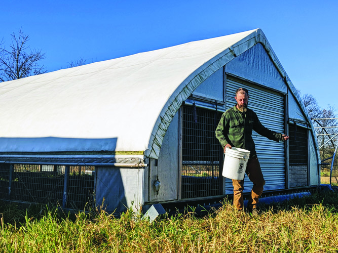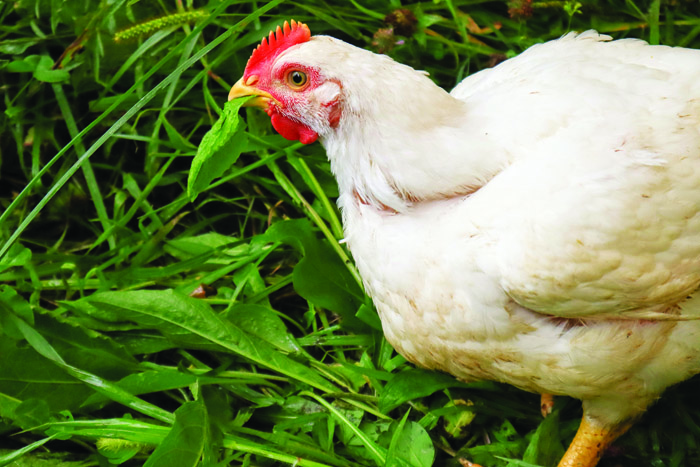 If you’ve raised broiler chickens in mobile shelters on pasture, then you’re familiar with the view looking back along the path the chickens have traveled, where plants are flattened and covered in chicken manure. Then, as you scan farther back, you’ll see the grass recovering, with a rich green hue from the flush of fertility. Looking at that same sight on my farm, I’ve been wondering how I might take greater advantage of all of that regrowth. So, for the past two seasons, I’ve been experimenting with using chickens as no-till planters to seed annuals into my perennial pastures.