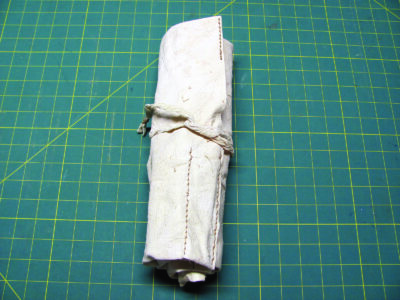 Even though this is a utilitarian piece, I still like to add personal embellishments. One of those is a braided strap for the tie. Making such a strap is also a good use of the thin leather from the sides of a deer hide.